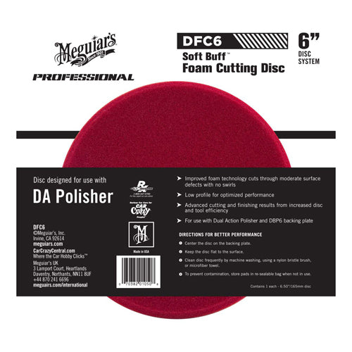 Met deze speciaal ontwikkelde cutting disc behaalt u nu nog betere resultaten! Het dunne design geeft u betere controle voor optimaal resultaat. Gebruik deze pad in combinatie met ultimate compound om hardnekkige lakdefecten te verwijderen. De pad is beschikbaar in 5 en 6 inch. Indien u deze 6 inch disc op de MT310 machine wenst te gebruiken dient u de 6 inch backing plate DP6 te monteren. Ook geschikt voor de "oudere G220 machine"Gerelateerde producten
